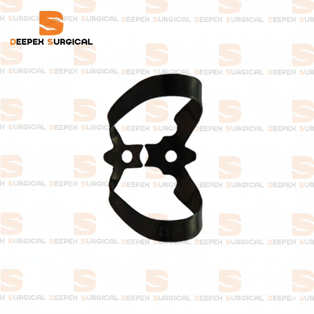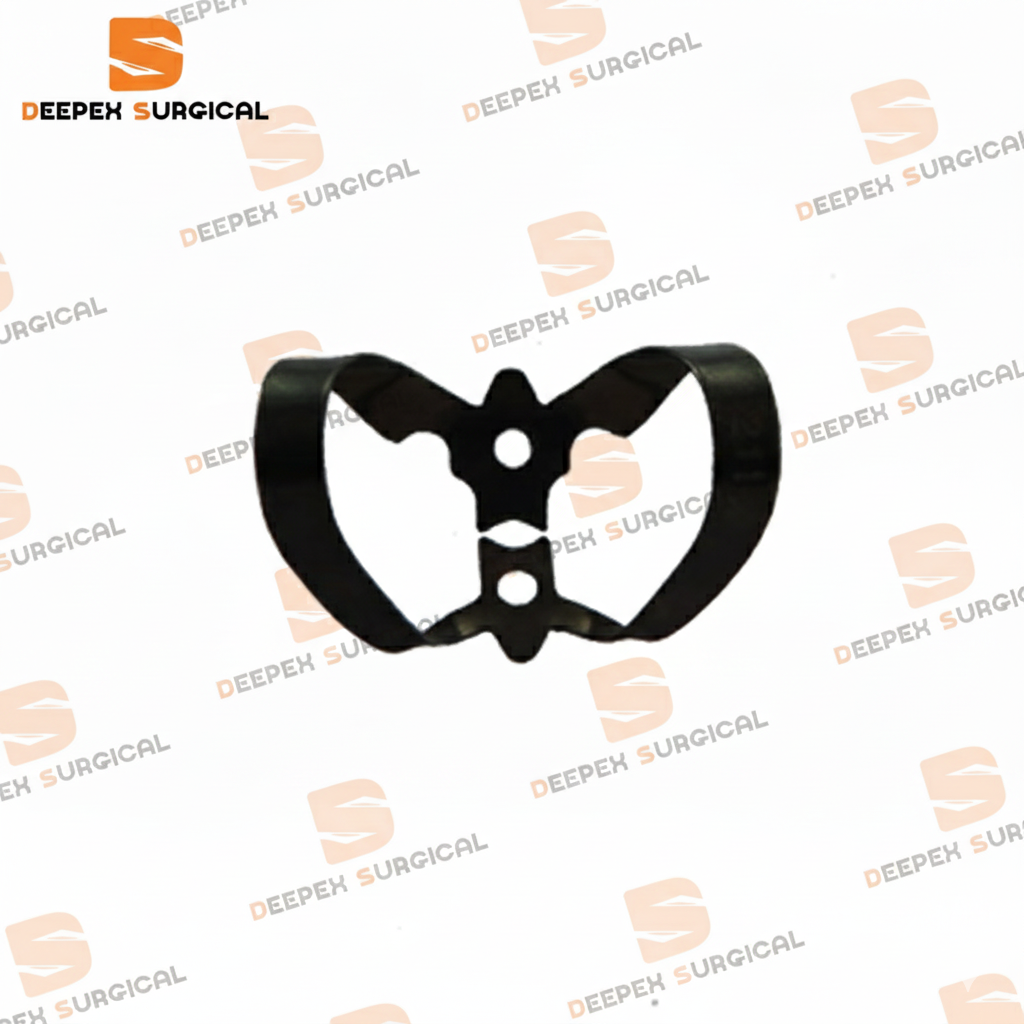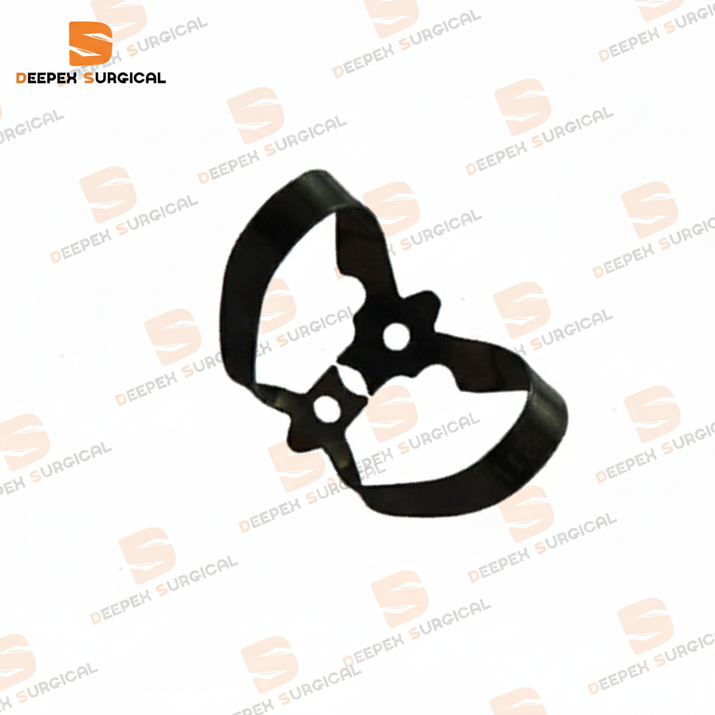 ​This high-quality instrument is designed for secure and stable placement of the rubber dam, ensuring a dry, isolated, and optimal working field for superior clinical outcomes. The specialized black finish is crafted to minimize light reflection, reducing glare and providing maximum contrast against the tooth structure and white rubber dam material, thereby enhancing visibility and reducing eye strain during intricate procedures.